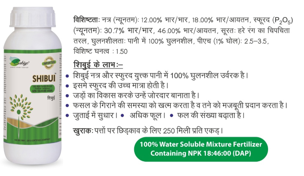 (1) SHIBUI is a 100% water soluble fertilizer containing N & P.